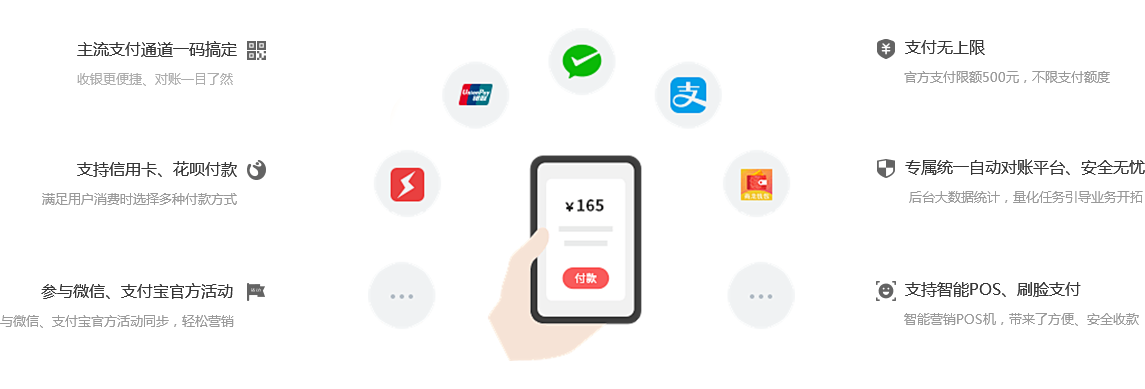 聚合支付,一站式解决商家收银、营销、运营问题!